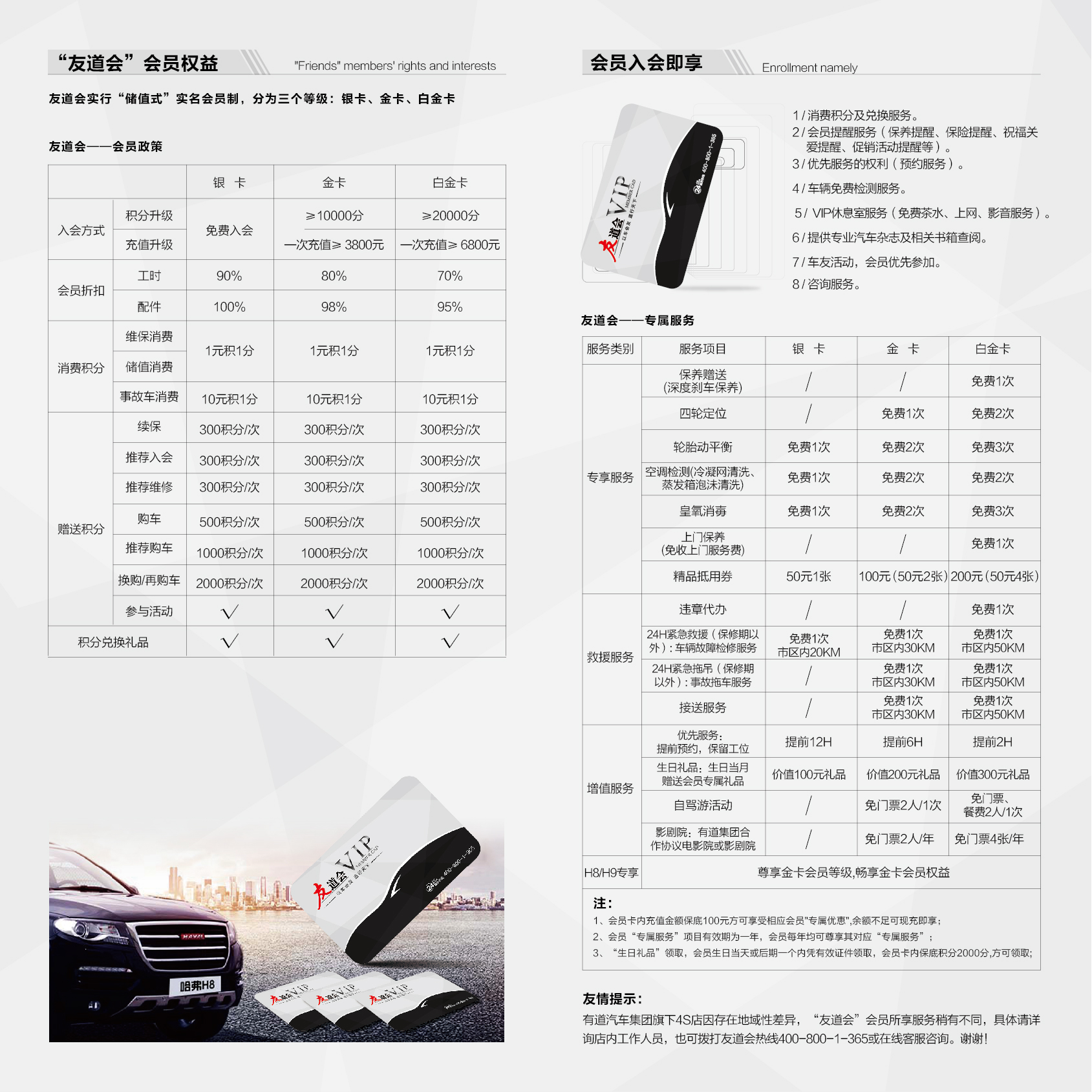 友道會俱樂部實行一車一卡制,以專業(yè)化服務和會員制管理為經營特色,會員身份具有良好的增值潛力,是車主尊貴身份的象征。