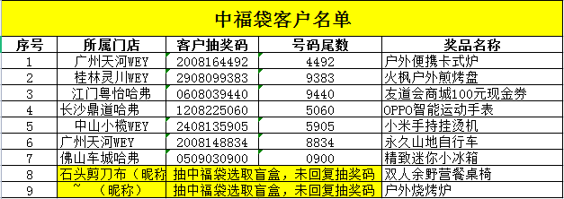 中獎(jiǎng)客戶名單
