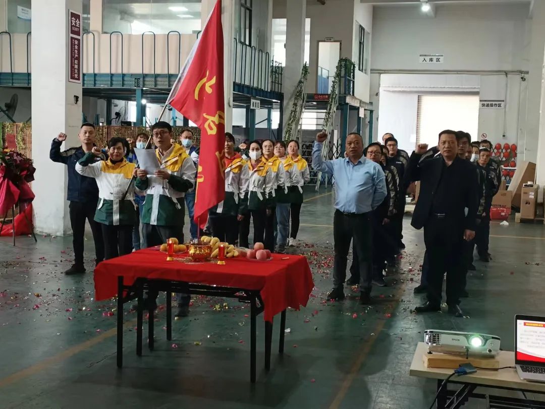 湖北名道團隊現(xiàn)場授旗并進行服務保障宣誓儀式:明確自己的工作目標與使命,認真對待每一份訂單,精準發(fā)運每一個備件,用心服務 每一個客戶, 使命必達,亮劍沖鋒!
