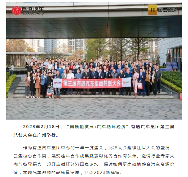 “高質(zhì)量發(fā)展?汽車(chē)循環(huán)經(jīng)濟(jì)”第三屆有道汽車(chē)集團(tuán)共創(chuàng)大會(huì)圓滿(mǎn)結(jié)束!