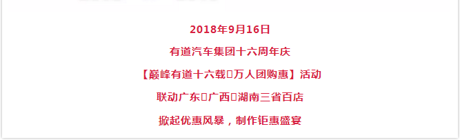 【巔峰有道十六載·萬人團購惠】有道汽車集團十六周年慶鉅惠來襲!