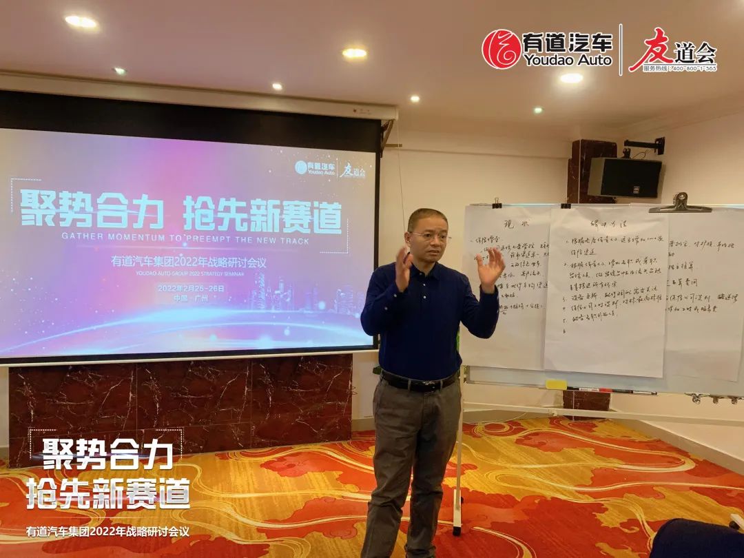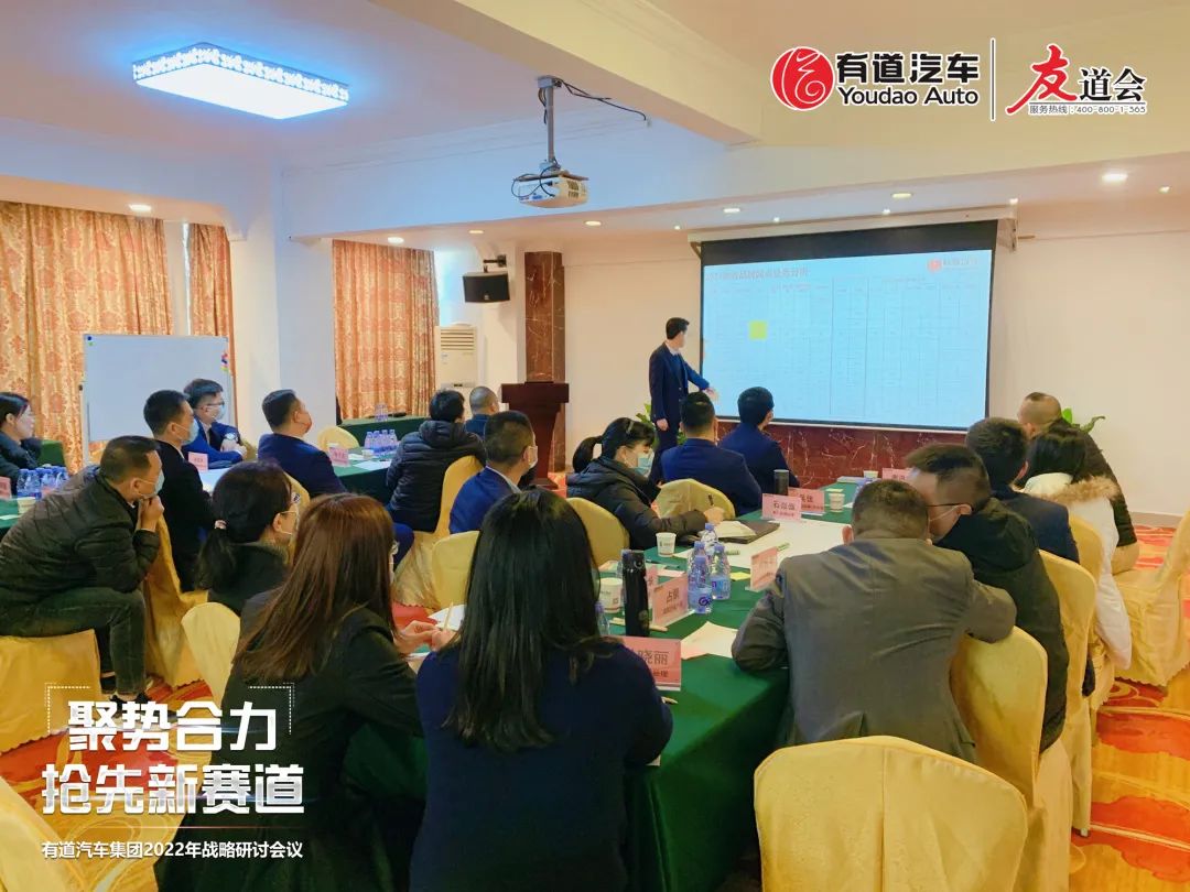 為了更好地迎戰(zhàn)2022年度,適應(yīng)市場發(fā)展需求,增強(qiáng)各區(qū)域及產(chǎn)業(yè)鏈模塊的業(yè)務(wù)能力及服務(wù)水平,促進(jìn)公司持續(xù)快速發(fā)展,有道汽車集團(tuán)在2022年召開“聚勢合力 搶先新賽道”戰(zhàn)略研討會。