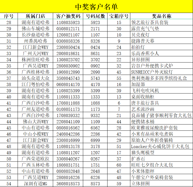中獎客戶名單
