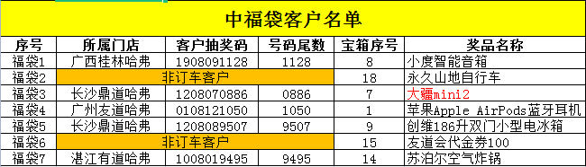 恭喜以上抽中直播間福袋的車友們,我們會在核對您的訂車信息后,將您的專屬福袋禮品送至您的訂車門店,您在提車時可以一起領(lǐng)取您的福袋禮品。
