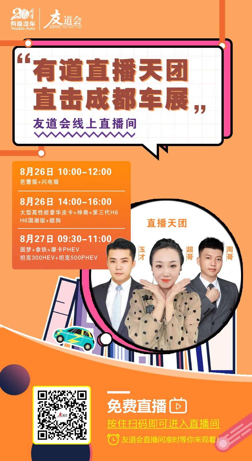 8月26日~8月27日,有道直播天團(tuán)直擊成都車展,敬請(qǐng)期待!