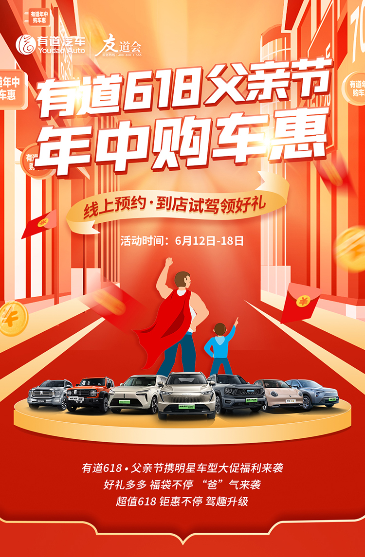 有道618?父親節(jié)攜明星車型大促福利來襲,八大鉅惠好禮“爸”氣來襲,不容錯過!