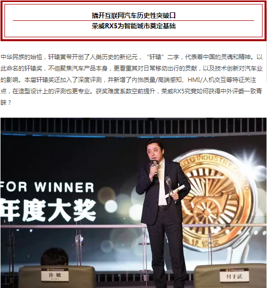 上汽榮威RX5獲軒轅獎,互聯(lián)網(wǎng)汽車全新品類推動中國汽車革新