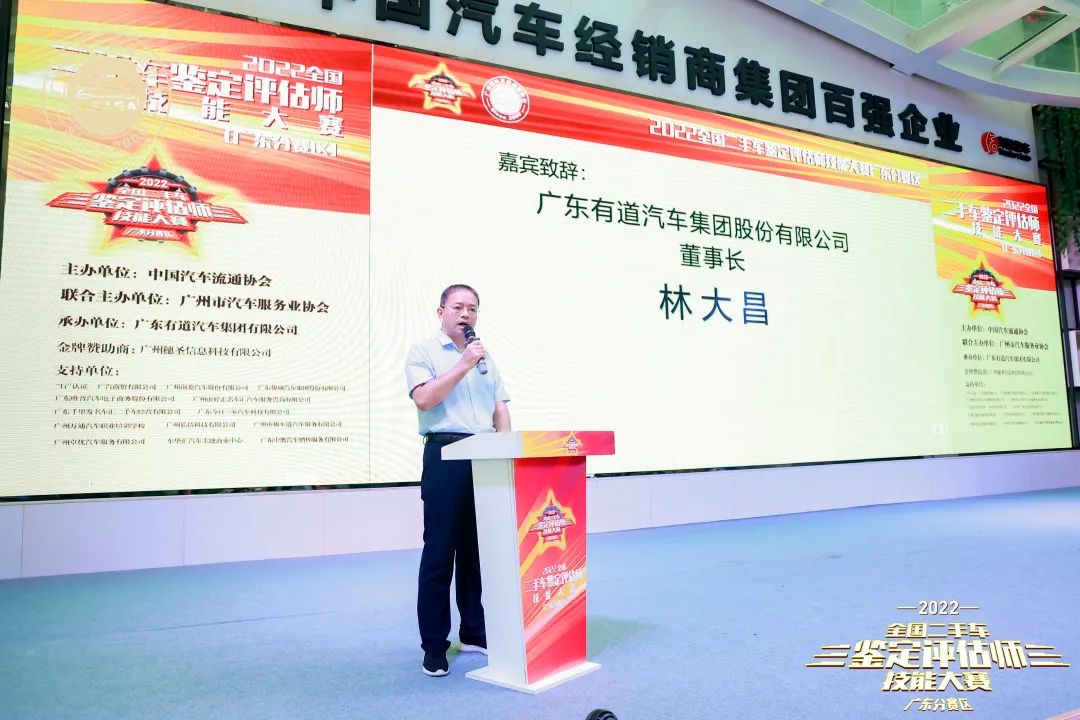 嘉賓廣東有道汽車集團(tuán)股份有限公司董事長林大昌先生現(xiàn)場上臺(tái)致辭,對本次比賽的舉行表示了祝賀,并為參賽選手們加油打氣,鼓勵(lì)大家發(fā)揮自身技能,取得優(yōu)秀成績,向全國賽挺進(jìn)。