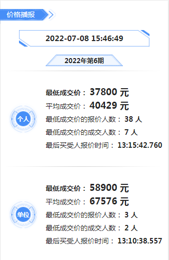 個(gè)人最低成交價(jià)為37800元,最低成交價(jià)成交人數(shù)為7人,個(gè)人平均價(jià)格為40429元/人;
