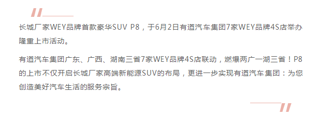 現(xiàn)在,即WEY來(lái)丨有道汽車集團(tuán)P8上市,燃爆三??!